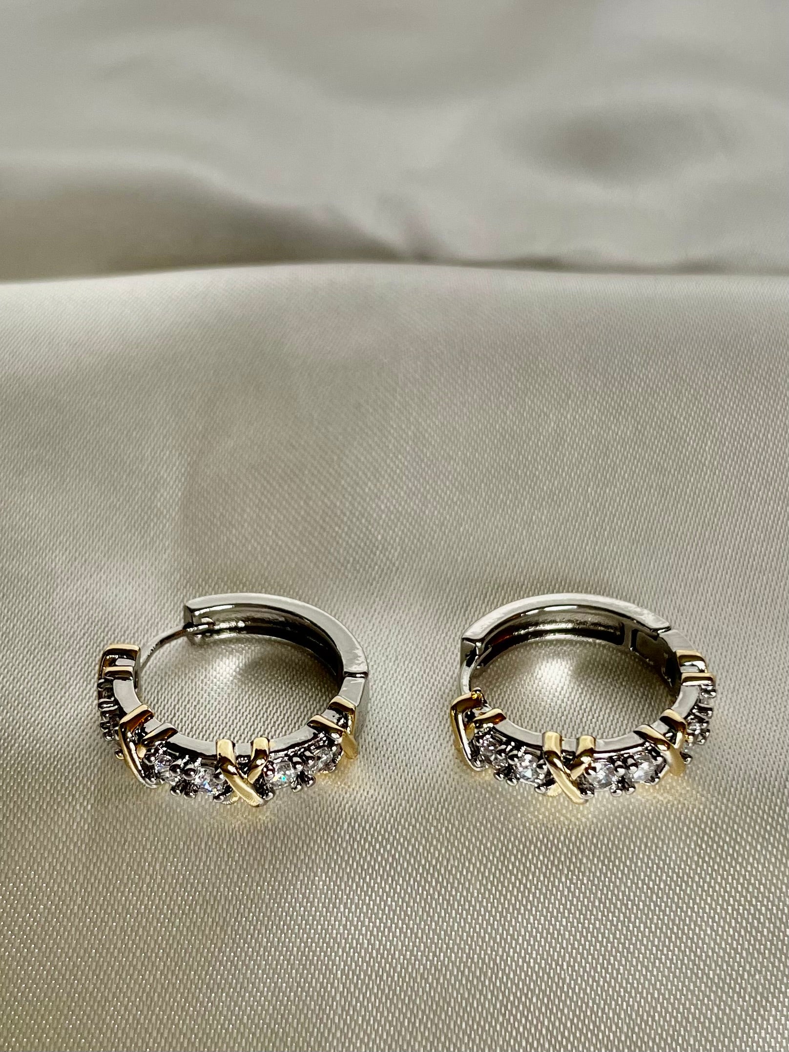 Boucles d’oreilles, argenté avec croix doré pare de strass.