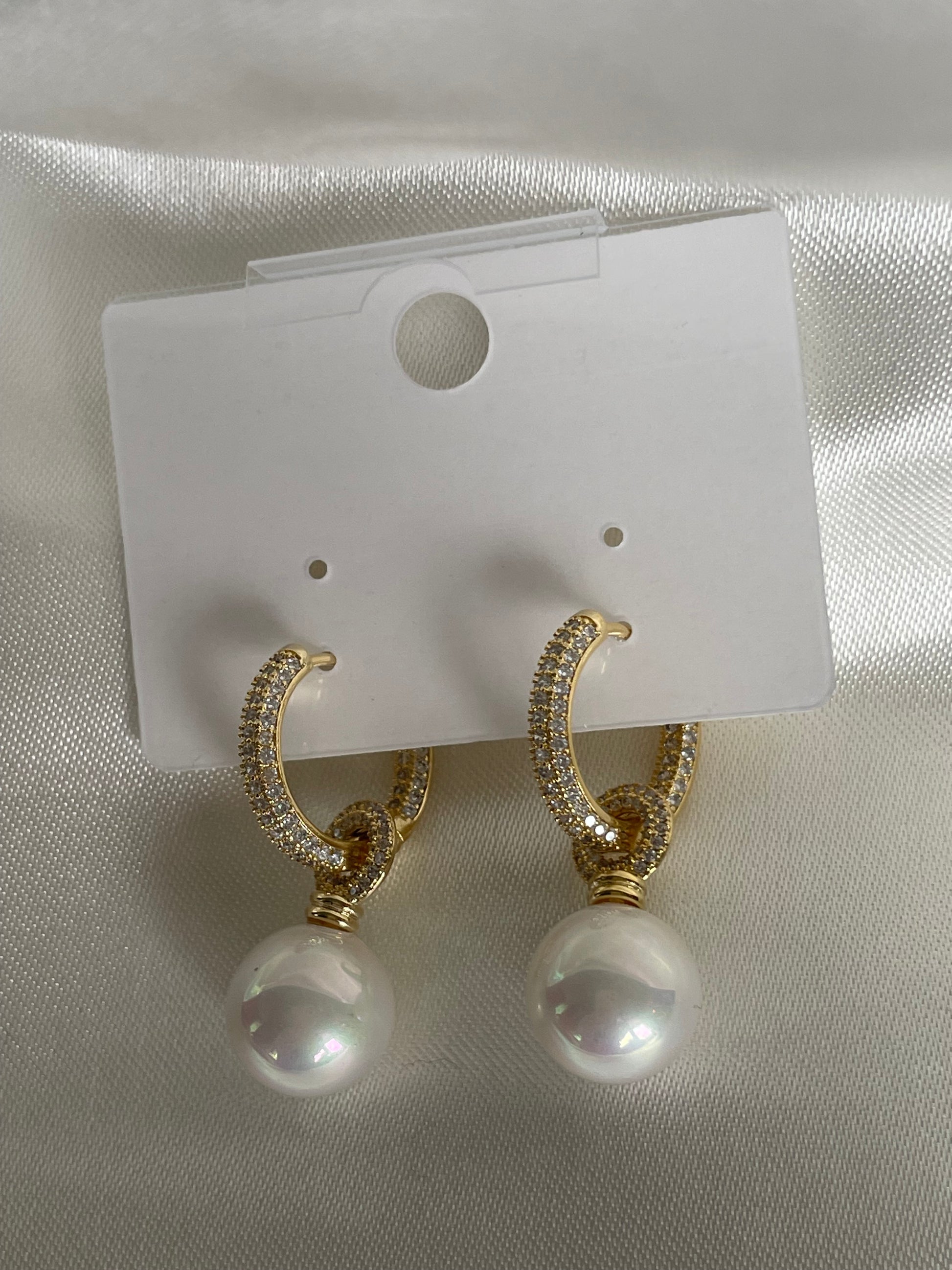 Boucle d’oreille. Avec perle blanche/ nacré pare de strass.